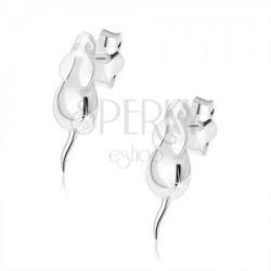 925 ezüst fülbevaló tükörfényű felszínnel és kicsi egér alakkal, részletesen kidolgozott testrészletekkel - szemek, fülek és farok. A fülbevaló kapcsolása stekkeres. A fülbevaló méretei: 5 x 14 mm A fülbevaló súlya: 0,7 g Fémjelzéssel ellátott. Az ár egy párra vonatkozik.