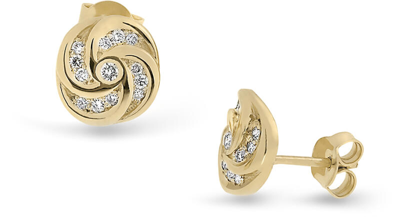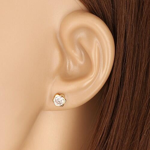 Az 585 sárga arany fülbevalót egy csiszolt kerek cirkónia alkotja, amely egy díszesen formált foglalatba van beültetve. A csillogó cirkónia átlátszó. A foglalat virág alakú, amelynek hat kerek szirma van. Stekkeres fülbevaló csavaros zárral. A stekker díszesen formált. A fülbevaló mérete: 6 x 6 mmA fülbevaló súlya: 0,64 gFémjelzéssel ellátva. Az ár egy párra vonatkozi