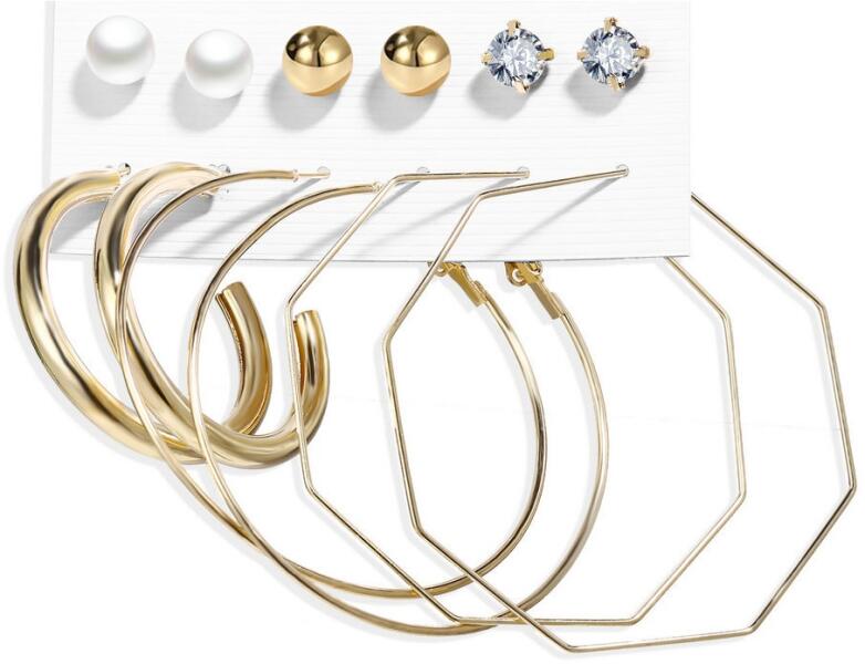 Zarah Fülbevalószett Zarah fülbevalószett szuper áron. A szett 6 pár különböző formájú, méretű és díszítésű fülbevalót tartalmaz. Nem tartalmaz nikkelt, ezért érzékeny bőrű emberek is viselhetik. Tulajdonságok: Anyaga: Fém ötvözet Szín: Arany A fülbevalók mérete: 0,6cm - 5cm