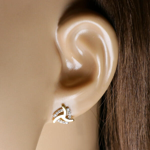 A 14K arany fülbevalók három, sima és fényes felülettel rendelkező karból állnak, amelyek középen találkoznak. A karok mögött háromszög körvonal található, lekerekített oldalakkal. A háromszög felületét kerek átlátszó cirkóniák kövezik. A fülbevaló stekkeres zárral rendelkezik. Fülbevalók átmérője: 9 mmFülbevalók súlya: 1,0 gFémjel- vanAz ár egy párra é