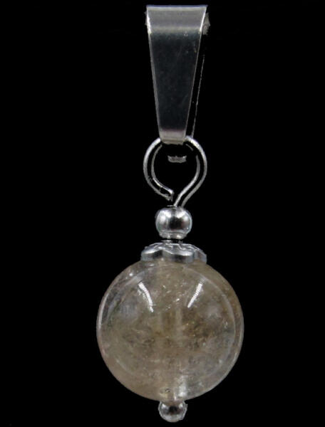 Kerek csiszolású sárga színű imperiál topáz drágakő medál. A topázok közül a sárga színű ritkábban fordul elő, így az ára is jóval magasabb. A jelenlegi imperiál topáz szabályos, 8mm-es gömb, ez viszonylag nagy méretnek számít, színe némileg eltér. A kövekben kisebb, nagyobb zárványok láthatók. A medált orvosi acélra szereltem. A topáz vélt hatása
