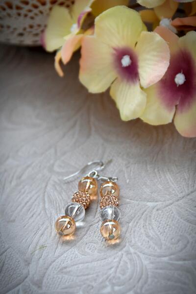 Romantikus rosé arany fülbevaló cirkóniákkal , modell IZ24738R