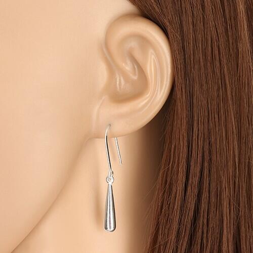 A 925 ezüst fülbevaló hosszúkás csepp alakú. A könnycsepp sima, magasfényű felületű. A fülbevaló afrikai horgon függ. A fülbevaló mérete (zárszerkezettel együtt): 5 x 41 mmA fülbevaló súlya: 1,90 gFémjelzéssel ellátva. Az ár egy párra vonatkozik.