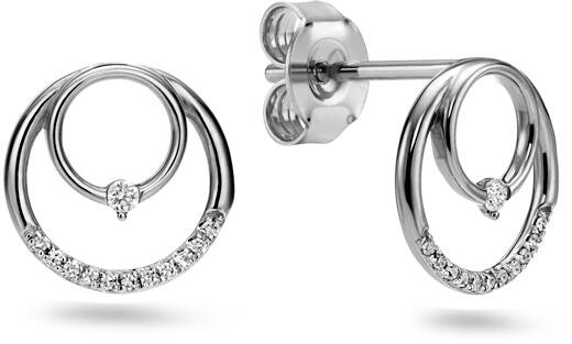 Gyémánt körökkel díszített fehérarany csokornyakkendő fülbevaló 14k fehér aranyból. A finom körök formájú dizájnt 0,07 ct össztömegű természetes gyémánt díszíti. A gyémántok H színű és SI1 tisztaságúak, ami fényességet és ragyogást kölcsönöz nekik. A precíz szabás és a szimmetria biztosítja, hogy ezek a drágakövek maximálisan visszaverjék a fényt, ö