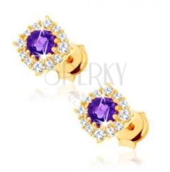 Fülbevaló 9K sárga aranyból, amelyet egy négyzetes kontúr alkot kerek, csillogó, átlátszó cirkóniákkal. A keret közepébe egy csiszolt, kerek ametiszt van ültetve lila árnyalatban. Biztonságos viselését stekker biztosítja. A fülbevaló méretei: 5 x 5 mmA fülbevaló súlya: 0,5 gFémjelzéssel ellátott. Az ár egy párra vonatkozik.
