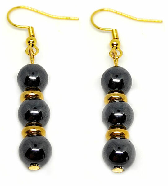 Az ékszer ásványai és tartozékai: – 8 mm-es hematit ásvány gyöngyök – arany díszek Akasztó anyaga rozsdamentes acél. Az ékszerben található ásványok jótékony hatásai: HEMATIT Testünkre: A hematit ásvány általános vértisztító hatása ismert, méregtelenítésben, sebek, égési sérülések gyógyulásában hatásos lehet. Hát-, váll-, derékfájdalmak enyhíthető