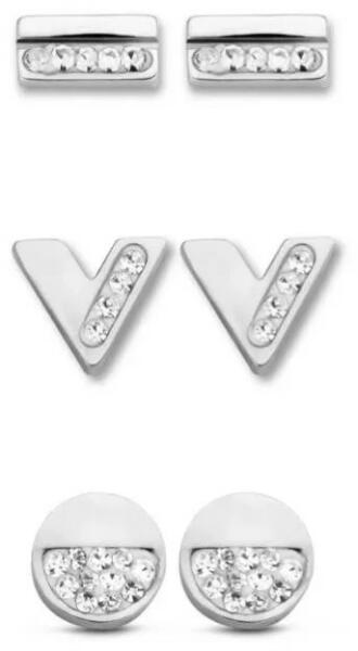 szett tartalma: 3 pár fülbevaló kövekkel. mérete: 50 mm anyaga: ezüst színű rozsdamentes acél származási hely: Franciaország