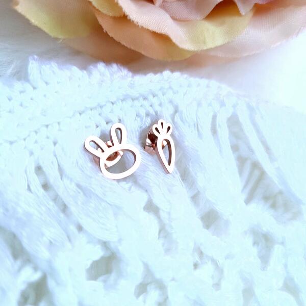 Nyuszi-répa asszimetrikus acél fülbevaló - ezüst/rosegold