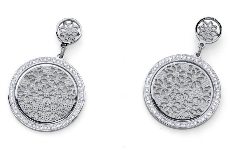 Kör alakú bedugós fülbevaló fehérarany bevonattal. Elegáns forma. Az ékszer alapféme: nikkelmentes fém ötvözet fehérarany bevonattal Kő típusa: cirkon Mérete: 12mm