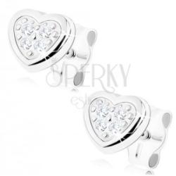 Fülbevaló 9K fehér aranyból szimmetrikus kicsi szívvel, amely középen apró gravírozott pontokkal díszített és átlátszó cirkóniákkal. A lekerekített szélek fényesek és simák. Biztonságos viselését stekker biztosítja. A fülbevaló méretei: 6 x 5 mmA fülbevaló súlya: 0,3 gFémjelzéssel ellátott. Az ár egy párra vonatkozik.