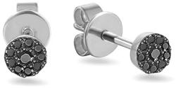 Minimalista fülbevaló fehér aranyból. A kerek formájú fülbevalók csillogó gyémántokkal vannak kirakva, 0.100 ct össztömeggel és fekete színben. A gyémántok iZlato® eredetiségi tanúsítvánnyal rendelkeznek.