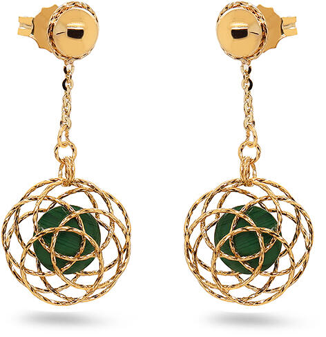 Fülbevaló egymásba fonódott dísszel és malachittal, modell IZ30627MN