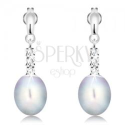 A fehér 14K aranyból készült fülbevalót egy egyenes, kisebb, fényes sáv alkotja, amely alatt három átlátszó, foglalatba helyezett cirkóniából álló sáv függ. Az utolsó foglalat végén egy nagy, ovális alakú, szürke színű gyöngy van szorosan rögzítve. Biztonságos viselését stekker teszi lehetővé. Fülbevaló méretei: 8 x 25 mmFülbevaló súlya: 2,6 gFémjelzéssel