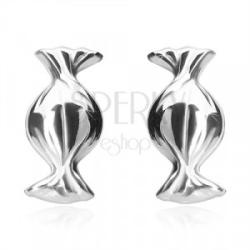 A 925 ezüst fülbevaló cukorka alakú és fényes felületű. A cukorka papírját dekoratív vonalak alkotják. A cukorka kerek, a szélein háromszög alakú. Aszimmetrikus formájú és a közepe felé enyhén kidomborodik. Stekkeres zárszerkezettel rendelkezik. A fülbevaló mérete: 7 x 15 mmA fülbevaló súlya: 1,3 g Fémjelzéssel ellátva. Az ár egy párra vonatkozik.