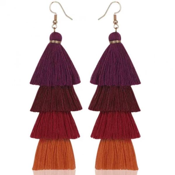 Quasten Fülbevaló Ez a fülbevaló a színek és textúrák fesztiválja. A fülbevalópár több réteg bojtból áll, amelyek más-más színűek. Ez a több színből álló dizájn nem csak elbűvölő, hanem energiával és vidámsággal teli, aminek köszönhetően ez a fülbevaló látványos kiegészítő lehet bármilyen alkalomra. Ez a fülbevaló szuper választás lesz azon hölgyek