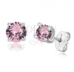 A 925 ezüst fülbevaló egy foglaltban elhelyezkedő csillogó cirkóniából áll. A kerek, halványlila cirkóniát négy karom tartja. A négyzet alakú foglalat hátulján egy keskeny kivágás található. Stekkeres zárszerkezet. A cirkónia átmérője: 6 mmA fülbevaló súlya: 1,2 g Fémjelzéssel ellátva. Az ár egy párra vonatkozik.