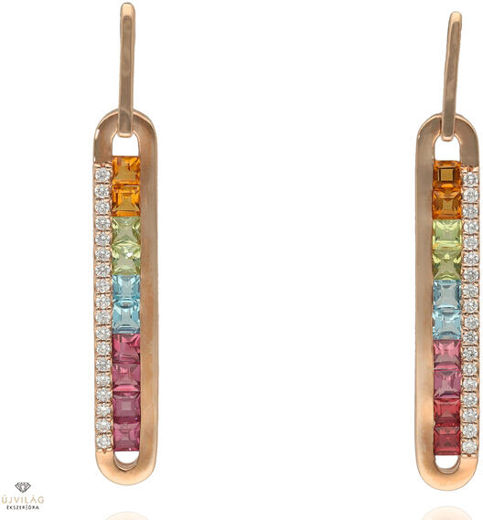 Jótállás: 36 hónap | Anyag: Arany | Szín: Rosé arany | Finomság: 14 karát | Felület: Fényes | Zárszerkezet: Stekkeres | Kő anyaga: Gyémánt, Citrin, Kék topáz, Turmalin | Gyémánt súlya: 0.18 ct | Gyémánt tisztaság: SI | Gyémánt színe: Wesselton (11-30735-0-45-1)