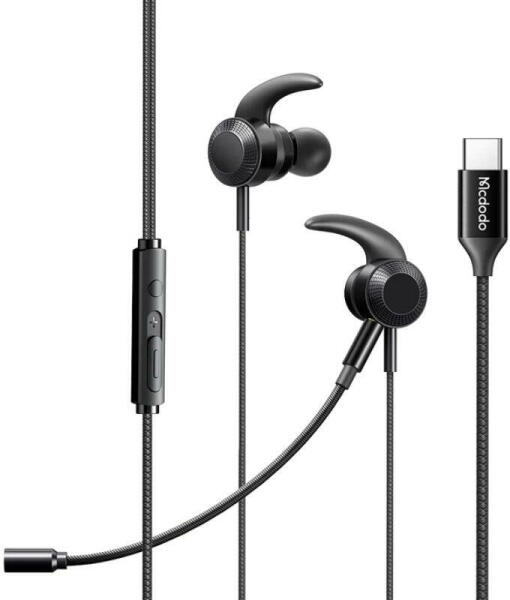 Mcdodo HP-1340 gaming headphones with microphone, USB-C (black) Mcdodo HP-1340 is a wired headphone designed for gaming enthusiasts. Thanks to the 10mm drivers, every detail of the sound becomes clear and intense, providing an amazing gaming experience. The dual microphone will allow you to talk comfortably, while the magnetic design makes storage easy. They feature a USB-C connector for a stable