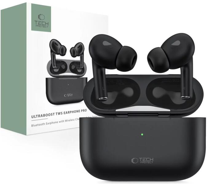 A Tech-Protect UltraBoost TWS Earphone Pro vezeték nélküli fülhallgatók tökéletes választás mindenki számára, aki kiváló hangzást szeretne. \nA fül érzékelési rendszer és az automatikus párosítás megkönnyíti a fülhallgatók használatát. Amikor a fülhallgatókat a fülbe helyezed, automatikusan párosítja azokat a Bluetooth-képes eszközzel, például okostelefonnal va