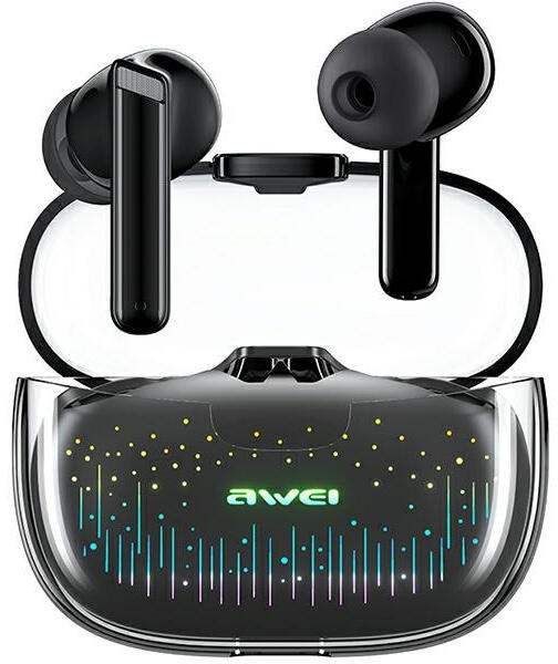 AWEI Bluetooth 5.3 T52 Pro2 TWS fülhallgató Az AWEI T52 TWS vezeték nélküli fülhallgató a legújabb Bluetooth 5.3 technológiával, stabil és hatékony hangátvitellel, intelligens zajcsökkentő rendszerrel és kiváló minőségű hangzással rendelkezik. A fülhallgató futurisztikus dizájnt kínál, amely magával ragadó vizuális élményt nyújt. Az átlátszó kapszula "Starlight
