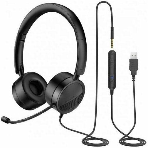 New Bee NB-H360 wired headset with microphone (black) The New Bee headset guarantees clear conversations and high-quality sound, making them ideal for office work. They feature a built-in noise-canceling sound card, and the ergonomic and lightweight design ensures long-lasting comfort. Compatibility with a variety of devices, including computers, consoles and smartphones, makes the headset a versa