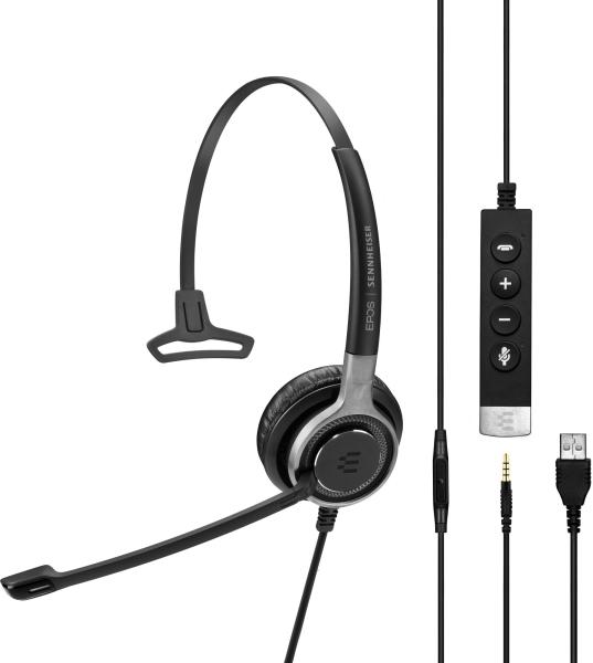 Epos-Sennheiser Impact SC 635 USB Fejhallgató Prémium minőségű, vezetékes, egyoldalas headset PC-hez/softphone-hoz vagy mobileszközökhöz USB vagy 3,5 mm-es jack csatlakozón keresztül. Modern kapcsolatközponti ügynökökhöz tervezve, amelyek kiemelkedő hangteljesítményt, tartósságot és fokozott mobilitást igényelnek. Kiváló minőségű tervezés és kivitelezés Szálcsiszol