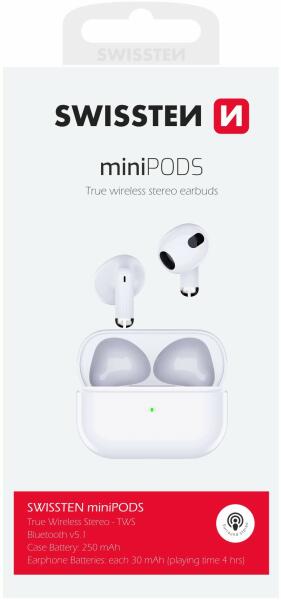 A Swissten Minipods elegáns vezeték nélküli fejhallgató könnyű, és nem is fogja érezni, hogy a fülében van. A beépített mikrofon lehetővé teszi, hogy telefonálásra is használható legyen. A Swissten Minipods elegáns vezeték nélküli fejhallgató könnyű, és nem is fogja érezni, hogy a fülében van. A beépített mikrofon lehetővé teszi, hogy telefonálásra is használha