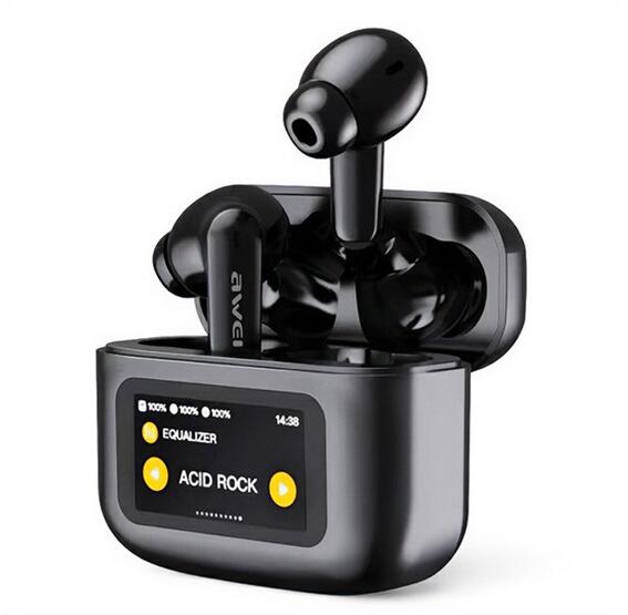 AWEI T56 bluetooth fülhallgató SZTEREO (v5.4, TWS, mikrofon, aktív zajszűrő, érintőkijelző + töltőtok) FEKETE A True Wireless Stereo (TWS) technológiának köszönhetően az AWEI T56 fülhallgatók teljes mozgásszabadságot biztosítanak a zavaró kábelek nélkül. Ráadásul a dokkolóállomás érintőképernyővel van felszerelve, amely hozzáférést biztosít minden funkcióhoz.