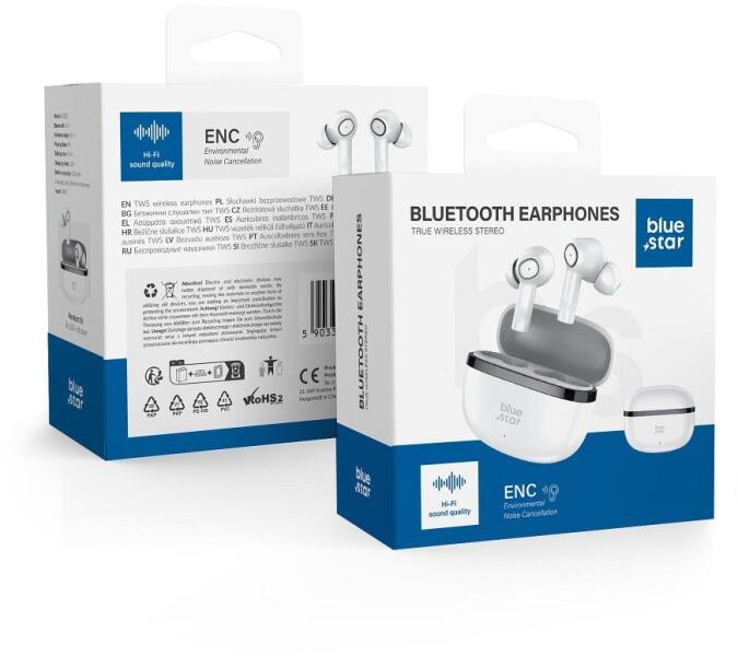 A BLUE STAR TWS AC20C vezeték nélküli fejhallgató töltőtáska modern megoldás a kényelmet és a hangminőséget értékelő zenekedvelők számára. Bluetooth 5.4 technológiát használnak, amely stabil kapcsolatot és zökkenőmentes hangfolyamot biztosít a kompatibilis eszközökkel akár 12 méteres hatótávolságon belül. Környezeti zajszűréssel (ENC). A fejhallgató beépített