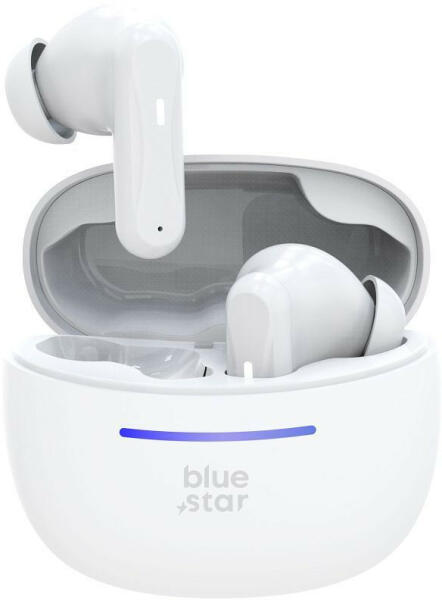 A BLUE STAR TWS BK44 vezeték nélküli fejhallgató modern megoldás a kényelmet és a hangminőséget értékelő zenekedvelők számára. Bluetooth 5.4 technológiát használnak, amely stabil kapcsolatot és zökkenőmentes audio streaminget biztosít a kompatibilis eszközökkel akár 12 méteres hatótávolságon belül. A LED sáv jelzi a fejhallgató és a tok töltöttségi szintjét. A