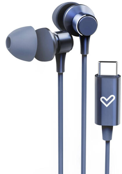 Type-C csatlakozós fülhallgató beépített digitális konverterrel a HD hangzáshoz. Minőségi alumíniumból, újrahasznosított műanyagból készült. Hordtáskával, mikrofonnal és 3 gombos kontrollerrel a hangerő beállításához és a dalok váltásához.
