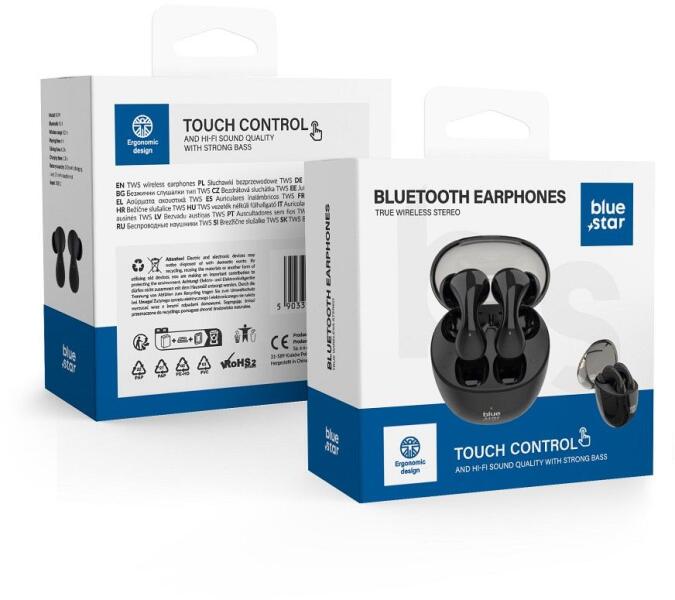A BLUE STAR TWS BK99 vezeték nélküli fejhallgató modern megoldás a kényelmet és a hangminőséget értékelő zenekedvelők számára. Bluetooth 5.4 technológiát használnak, amely stabil kapcsolatot és zökkenőmentes audio streaminget biztosít a kompatibilis eszközökkel akár 12 méteres hatótávolságon belül. A fejhallgató beépített 25 mAh-s akkumulátorral rendelkezik, amely