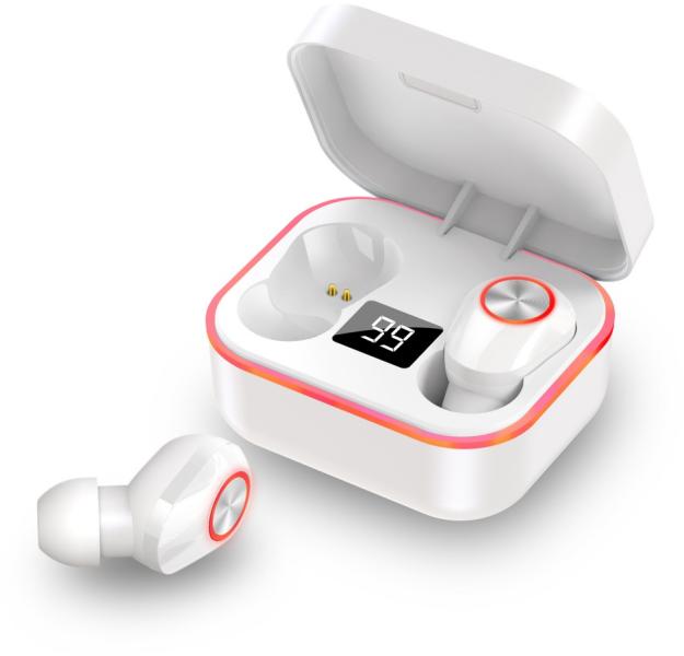 Alpha M8 vezeték nélküli bluetooth fülhallgató, fehér, töltőtokkal Bluetooth vezeték nélküli fülhallgató exkluzív fehér töltőtokkal. Kiváló választás sportoláshoz, utazáshoz. Hosszú akkumulátor idejének kösszönhetően akár 3,5 órán keresztül élvezhetjük kedvenc zenéinket. A töltőtokkal háromszor újra tölthetők a fülhallgatók, a feltöltési idő pedig nem