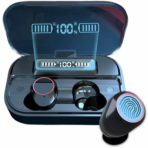 Ez egy automatizált szoftver általi fordítás:Vezeték nélküli Bluetooth fejhallgató töltőtokkal és kihangosító funkcióval. Bluetooth 5.0 LED kijelző, amely mindkét fejhallgató aktuális töltöttségi állapotát mutatja működési hatótávolság: 10 m-ig beépített újratölthető akkumulátorok – minden kézibeszélőn 40 mAh-s akkumulátor található töltőtok 300mAh lít