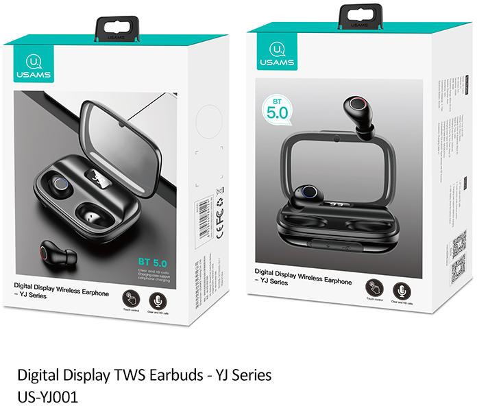 USAMS-YJ Digitális kijelzős vezeték nélküli 5.0 fülhallgató - YJ sorozat Jellemzők: 1. BT 5.0, tiszta és HD hívások 2. Touch control, többfunkciós kapcsoló 3. Töltő tok támogatja a mobiltelefonok töltését 4. LES kijelző, mutatja az akkumulátor állapotát Anyag: PC BT verzió: 5.0 Érzékenység: 103db SNR: 88dB Frekvenciatartomány:60Hz~20 KHz Hangszóró átmérője: 6m
