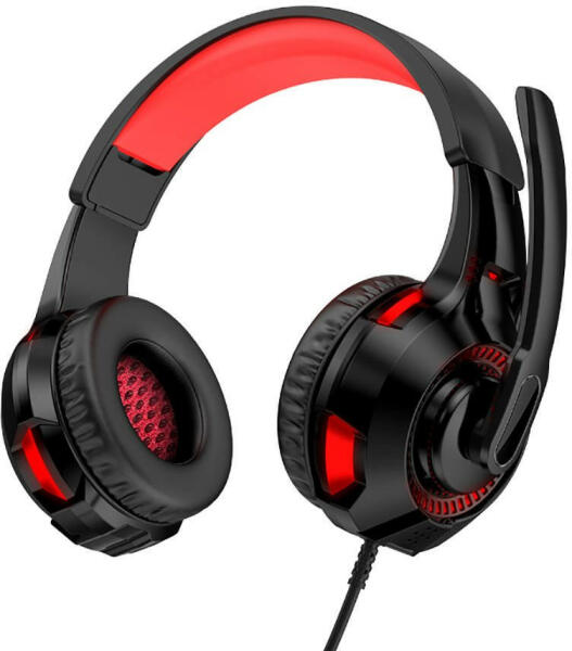 Kaku KSC-586 Led RGB Gaming vezetékes fejhallgató mikrofonnal, 2X 3.5mm jack+ USB vezetékes fejhallgató, fekete-piros