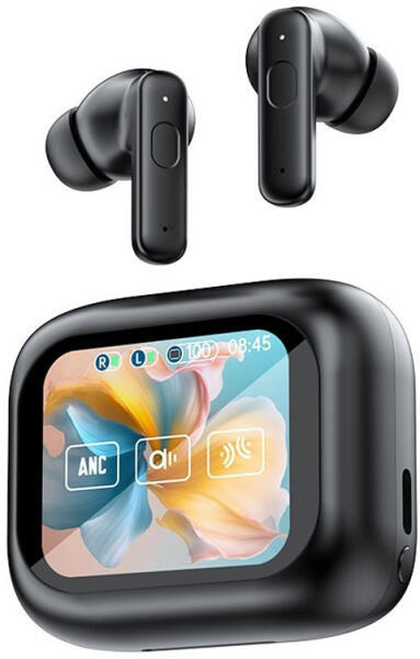 Bluetooth 5.4 sztereó fülhallgató, ENC és ANC zajcsökkentés, 7 különböző EQ, Spatial audio támogatás, színes LCD érintőkijelző. Tulajdonságok: ▪ Stabil és alacsony fogyasztású Bluetooth 5.4 kapcsolat ▪ 2" Színes LCD érintőkijelző ▪ Egyszerű, érintő gombos vezérlés ▪ ANC aktív jacsökkentés ▪ ENC zajcsökkentés telefonhívásokhoz ▪ 3 különböző műkö