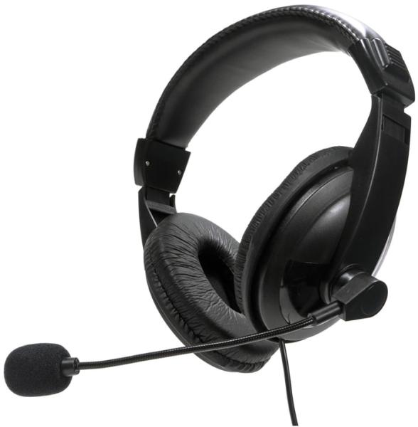 "Fejhallgató mozgó mikrofonnal és A típusú USB-csatlakozón keresztül történő csatlakozással a számítógéphez. A fejhallgató kényelmes, állítható fejpánttal rendelkezik, beépített mikrofonnal és műbőrrel borított habszivacs párnázással. Könnyen szabályozható a hang a vezetéken (opció ; - ;MUTE mikrofon vagy hang). A modern design stílusos kivitelezéssel biztosít