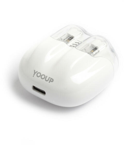 Bluetooth fülhallgató, headset Yooup E12 Transparent 5.1 TWS fekete. BT v5.1 Hangszóró átmérő:13 mm Akkumulátor kapacitása: töltőtok 220 mAh, fülhallgató 30 mAh Felhasználási idő:3 óra telefonálás/5 óra zene hallgatás Töltési idő:1.5 óra Méretek:87,5*64*28 mm Teljes tömeg:29 g