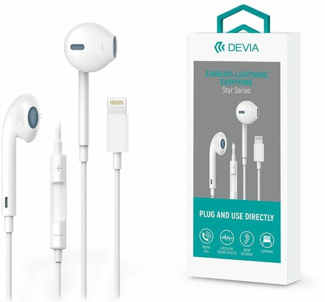 Gyártó:DEVIA, TÃpus:2.0 mikrofonos fülhallgató, Kompatibilitás:Lightning csatlakozóval rendelkezà eszközök;iPad;iPhone, Csatlakozó:Lightning, Kábel hosszúság:120, Jelleg:fülhallgató, Kapcsolódási technológia:Vezetékes, Kompatibilits:Lightning csatlakozóval rendelkezÅ eszközök;iPad;iPhone, súly:29, Kapcsoldsi technolgia:Vezet
