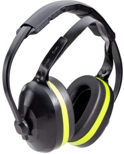 rugalmas, erősített, fekete és fluo sárga ABS fültok állítható, párnázott PVC fejpánt, illetve egy plusz szövet érzetű kiegészítő elasztikus fejpánt – lehetőség a sisakkal történő együtt hordásra. kényelmes, fekete bőrérzetű PVC párnázott belső állítható fejbőség és boltozati magasság magas védelmi képesség – SNR: 32 dB extra könnyű: 236 g darabonké