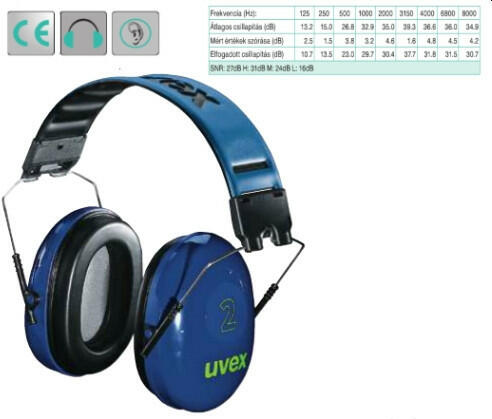 Uvex 2 acélpántos, könnyű és összehajtható fültok (SNR:27 dB) -? tartós, - kétpontos felfüggesztésű, - alaktartó, - állítható acélpántok ?- jól felfekvő, - nagy felszívóképességű, - puha párnák, - cserélhető higiéniai szett (U2000.017) ?- könnyű súly, - kis méret, - összehajtható kivitel SNR: 27 dB ?súly: 207 g EU szabvány: EN352-1