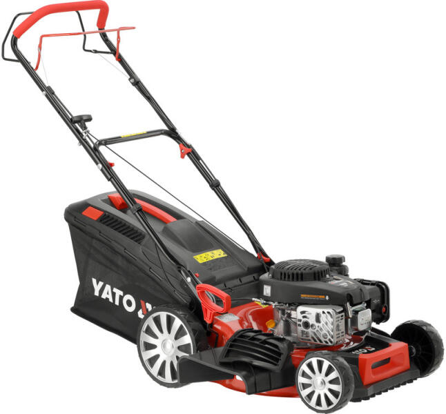 YATO YT-85528 benzines fűnyíró 196 cm3-es LONCIN motorral, amely nagy teljesítményt és hatékonyságot biztosít. Az 51 cm-es munkaszélesség gyors nyírást tesz lehetővé, a 8 fokozatú központi vágásmagasság-állítás pedig a kések szintjének zökkenőmentes beállítását teszi lehetővé a pázsit állapotához. A beépített meghajtó megkönnyíti a készülék kezelését m