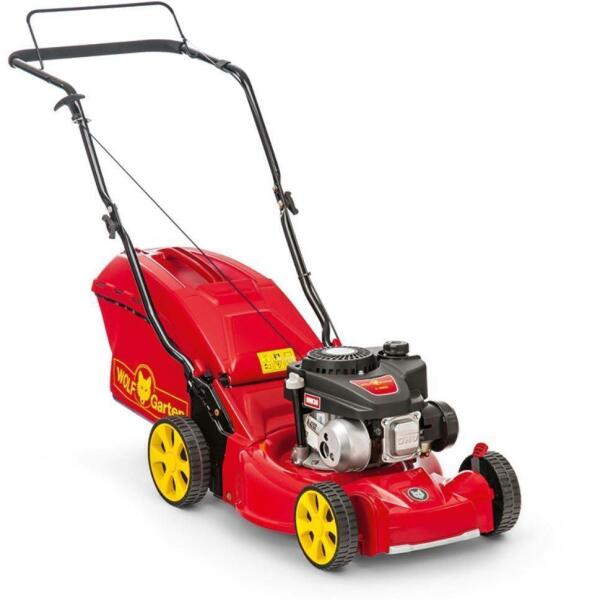 Gyártó: WOLF-Garten Modell: A 4600 (11D-TOSC650) Műszaki adatok: Ajánlott: 800 m2-ig Vágószélesség: 46 cm Motor: Wolf-Garten OHV 45, 140 cm3, 2,1 kw, 2800/min Fűnyíróház: acél Súly kb. : 32 kg Fűgyűjtő: 60 l Vágásmagasság állítás: 2 karos, 6 fokozat, 2,8-9,2 cm Üzemanyagtartály: 1 l Kerék méret e/h: 180 mm/ 200 mm Mulcskészlet: opcionális Lehajtható és állítható m