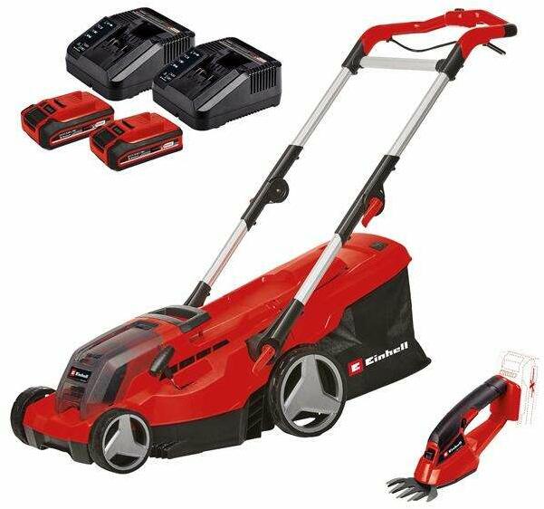 Termékinformációk:; ; ; Einhell GE-CM 36/37 Li Set (2x3,0Ah) akkumulátoros kertigép szett tartalma:; ; - Einhell GE-CM 36/37 Li 2x3,0 Ah akkumulátoros fűnyíró; - Einhell 3410382 PXC GE-CG 18/1 Li-Solo akku és töltő nélkül akkumulátoros fűnyíró olló; - 2 db akkumulátor; - 2 db akkumulátor töltő; ; Power X-Change rendszerakkumulátorok; 3 db LED-del ellátott akkumulátor