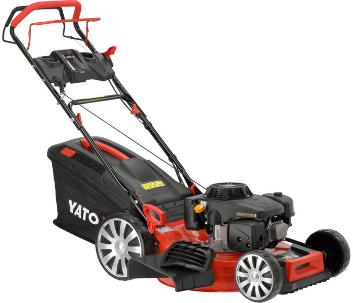 YATO YT-85537 benzines fűnyíró 224 cm3-es LONCIN motorral, amely nagy teljesítményt és hatékonyságot biztosít. Az 56 cm-es vágásszélesség gyors nyírást tesz lehetővé, a 8 fokozatú központi vágásmagasság-állítás pedig lehetővé teszi a kések szintjének zökkenőmentes beállítását a pázsit állapotához. A 62 literes kosár megkönnyíti a levágott fű összegyűjt
