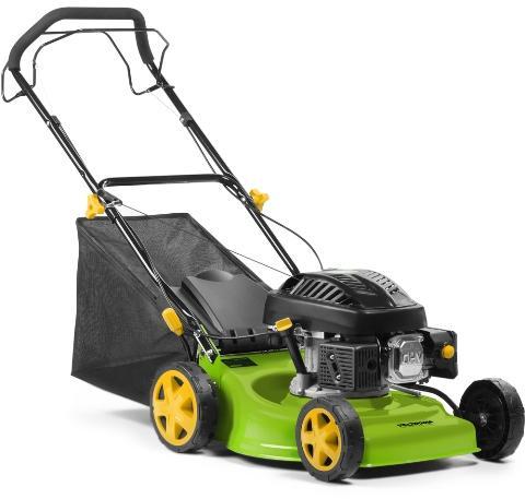 Lökettérfogat: 150cc Maximális teljesítmény: 2,6 kW Névleges fordulatszám" 2800 ford. /perc Hajtás típusa: Önjáró Vágási magasságok: 25-75 mm 7 fokozattal Magasságállítás: Középen állítható Vágási szélesség: 460 mm (18") Fűgyűjtő 50 l Motorház: acél Első/hátsó kerék (H kerék): 7/8 hüvelyk Kerék anyaga: PP Sebességváltó: KNK Golyóscsapágy: acél Puha mar