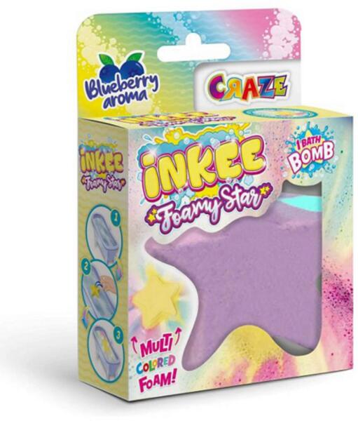 Craze Inkee: Szivárvány színű csillag fürdőbomba Hivatalos magyarországi forgalmazótól. Leírás: Merülj el egy mesés univerzumban a Craze Inkee szivárvány színű csillag fürdőbombával! Ez a különleges, csillag formájú fürdőbomba nem csak csodálatos látványt nyújt, amint élénk színeket bocsát ki a vízben, de az édes és frissítő áfonya illata is körbeöleli és