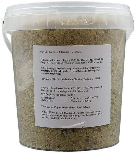 A méz üdítően édes illat, mindazok számára, akik lazításra és kikapcsolódásra vágynak. 1000 g-os parajdi fürdősó; Best Life Pro termék kádfürdőhöz.