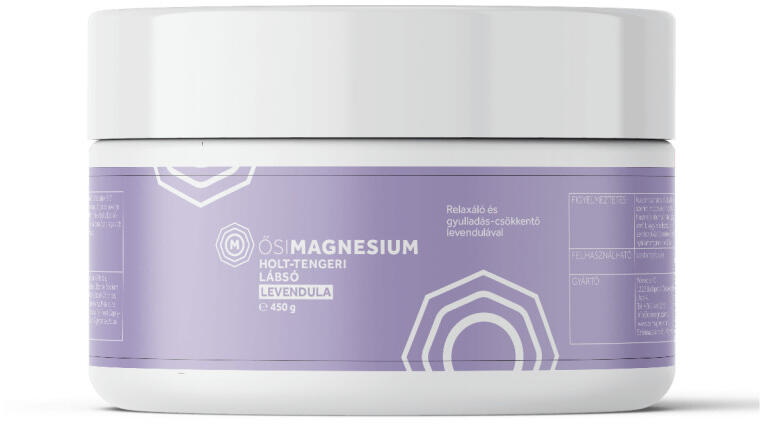 Ősi magnézium lábsó levendulás holt-tengeri 450 g Az Ősi Magnézium illatos lábsók tiszta holt-tengeri só, száraz magnézium-klorid és tiszta, bio minősítésű illóolajok keverékei, amelyeket kifejezetten lábfürdőhöz ajánlunk eukaliptusz, levendula és borsmenta illatban! Egy hosszú nap után tökéletes felfrissülést és pihenést nyújtanak lábainak, és segítenek fedezn